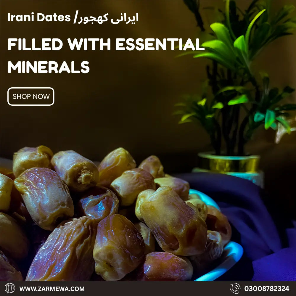 Irani Dates are soft, juicy, and naturally sweet — full of fiber, iron, and essential minerals. A delicious and healthy snack that supports energy, digestion, and heart health.
