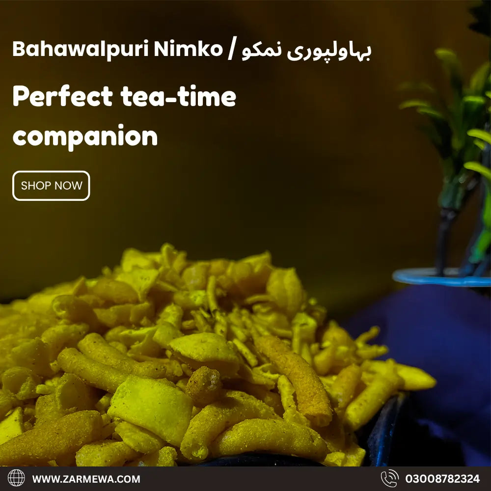 Bahawalpuri Nimko is a savory snack famous for its crispy texture and rich, spicy flavor. A traditional Pakistani favorite, perfect for tea-time, guests, or casual munching anytime.