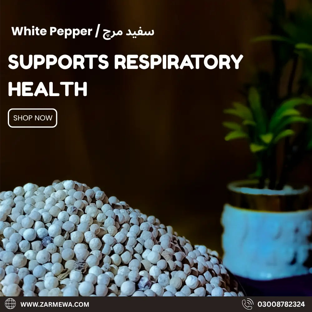 Safaid Mirch, or white pepper, is a milder yet effective spice often used in light-colored curries, soups, and herbal remedies. It helps improve digestion, supports metabolism, and soothes respiratory issues.